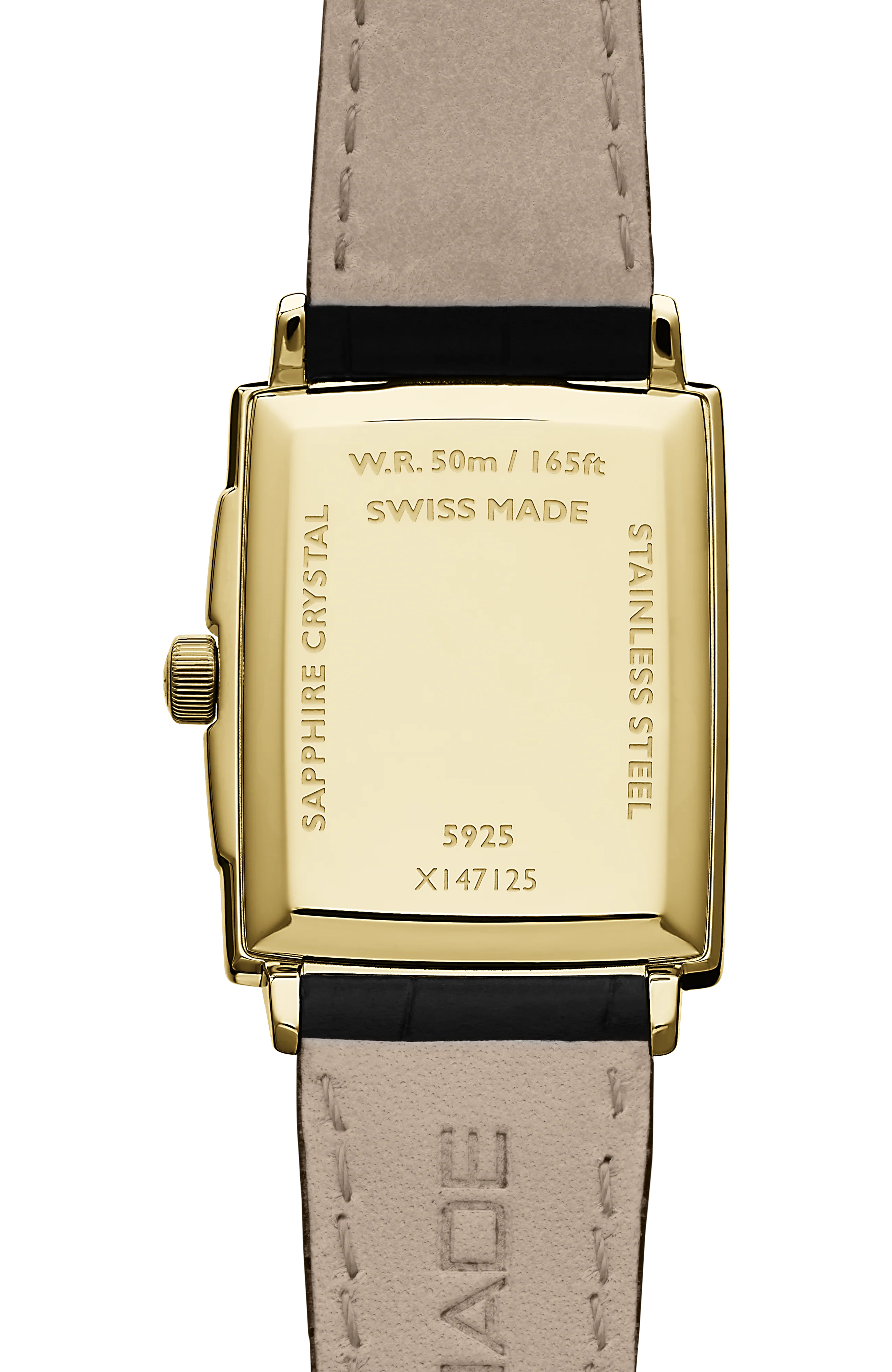 This new quartz model adopts a sophisticated art deco appeal with an elongated rectangular face and slim 6.25 mm case. This is our shallowest case design to date which gives a very sleek profile to this watch. This timepiece of choice is available in several variations. The face comes in combinations of black roman numerals on a crisp white dial or alternating gold & diamond indexes on a mother-of-pearl face.The sapphire crystal window is framed by a beveled rectangular case. The tiered design gives this watch an illusion of depth without the thickness. The watch is completed with RW monogram signature upon the crown.
